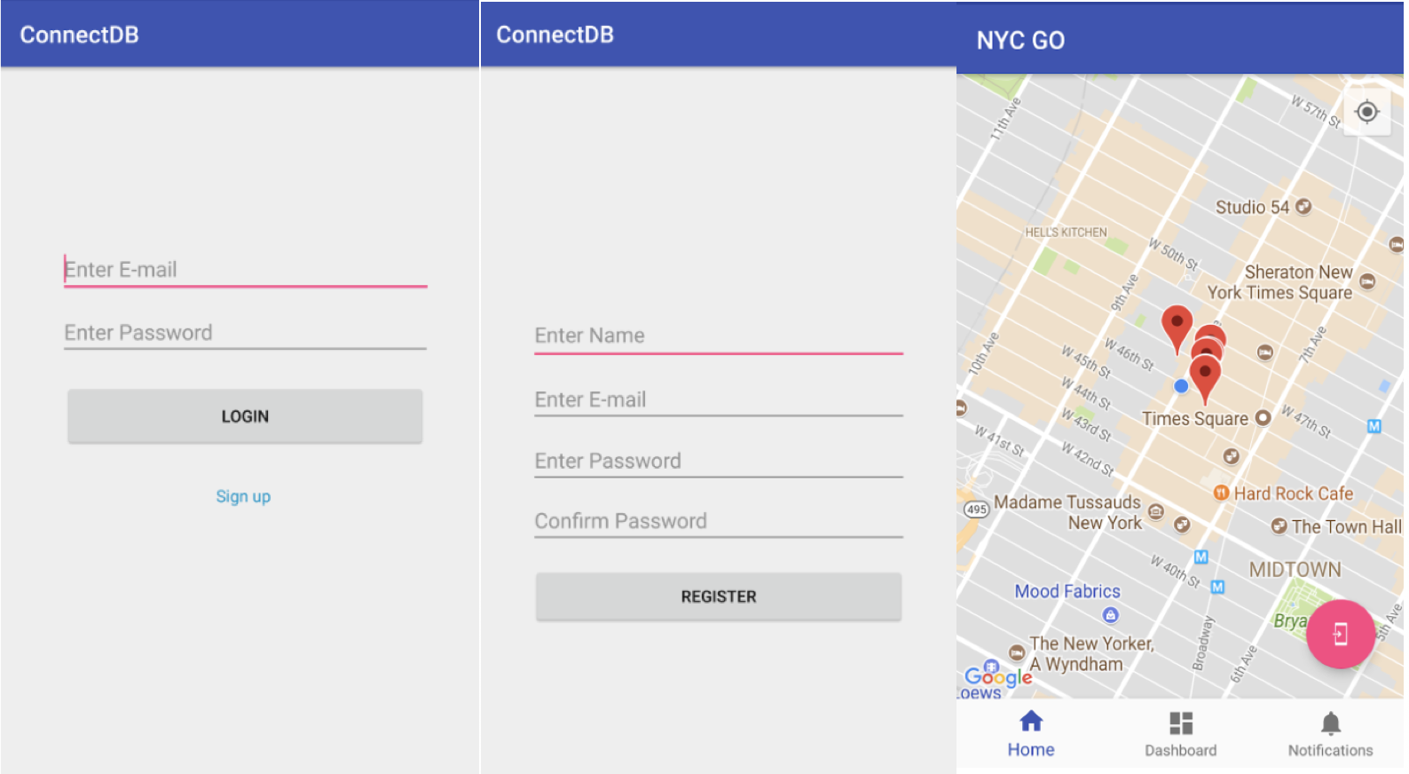 The Android app has a step counter, a Map to see the landmarks provided with by NYC Open Data